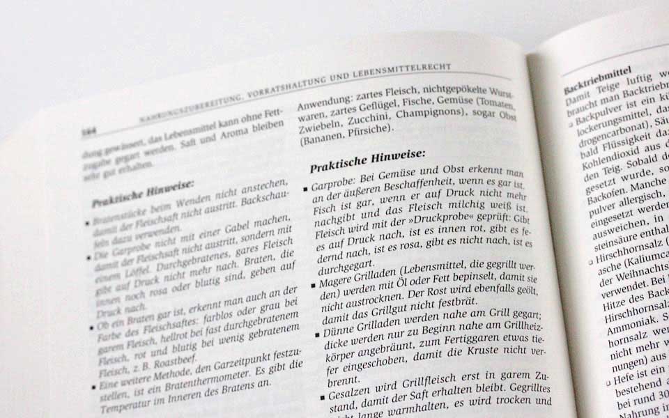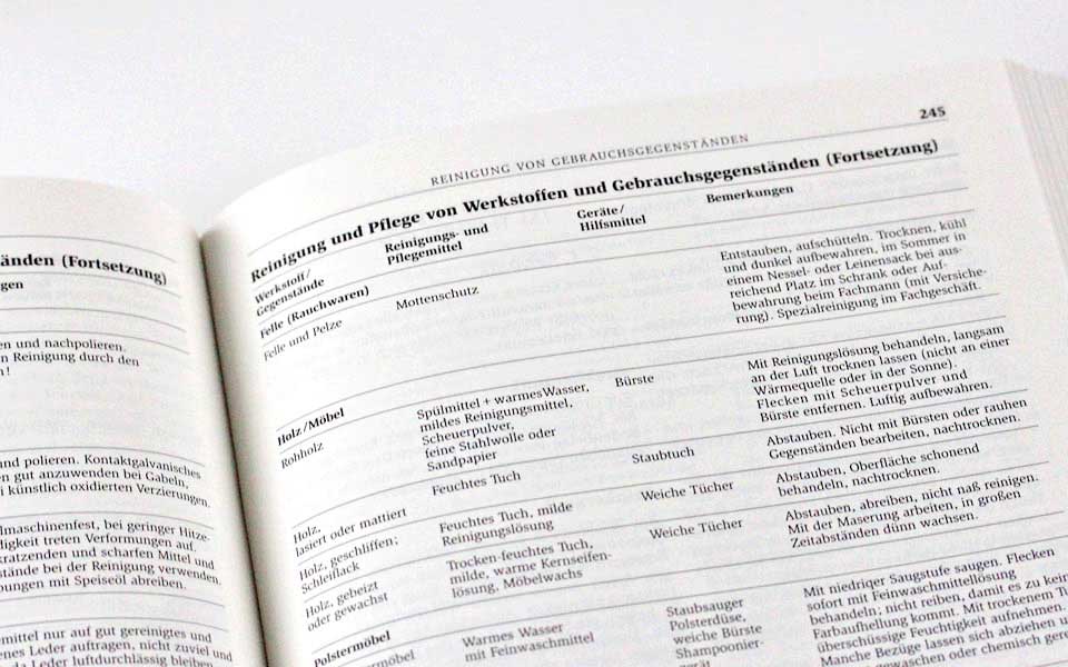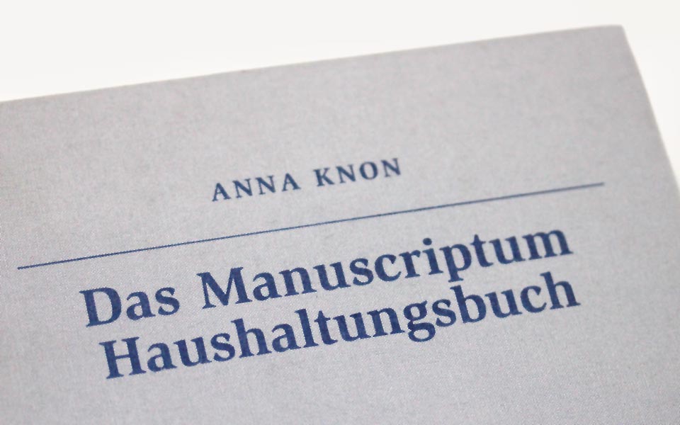 Das 2007 bei Manuscriptum verlegte Haushaltungsbuch von Anna Knon wurde von mir gestaltet und gesetzt. Auf 454 Seiten zu wirklich allen Themen des Haushalts enthält es Tabellen, Checklisten, Kriterien, die bei Käufen jeder Art zu beachten sind, und zu allen behandelten Themen kompakte praktische Ratschläge.