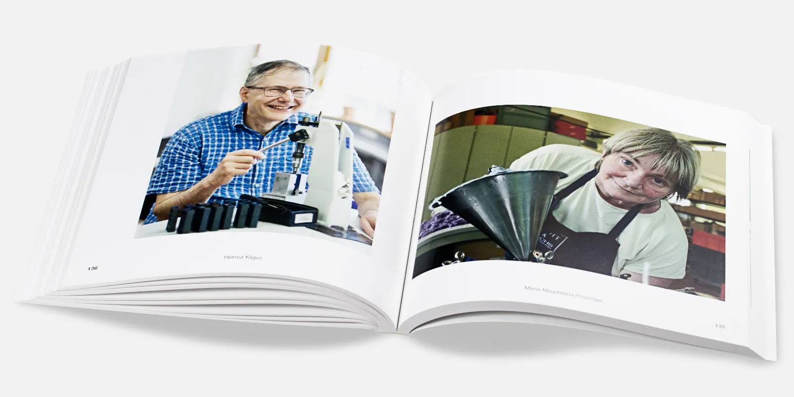 Die 232-seitige Broschüre erhielt einen feierlichen Kartonschuber mit umlaufendem Rückentext. Alle Hilfeberechtigten waren aufgerufen, sich an den Texten zu beteiligen. Der Bildband beinhaltet auch historische Fotos aus der zum Teil problematischen Vergangenheit.